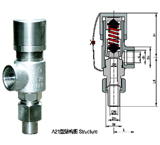 A21F、A21H-C彈簧微啟式螺紋安全閥型適用于工作溫度≤200℃的空氣、氨、石油氣等介質的設備或管路上。A21W-P、R型彈簧微啟式螺紋安全閥適用于溫度≤ 200℃有腐蝕性的氣體或液體的設備或管路上,作為超壓保護裝置。KA21Y型彈簧微啟式螺紋安全閥適用于溫度≤100℃的液體石油氣等。