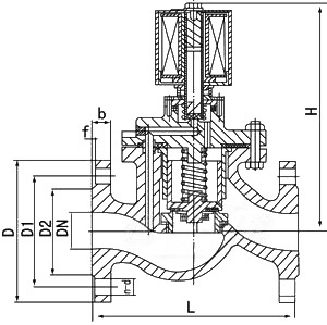 本閥是有副閥和主閥兩大部件構(gòu)成的先導式二次開闊的電磁閥。是靠副閥的啟閉來控制主閥的通斷。根據(jù)斷電時所處開關(guān)狀態(tài)的不同,可分為常閉電磁閥和常開電磁閥。常閉電磁閥,在段點常位時,副閥口封閉,主閥呈斷路,當電訊號進入導閥線圈時,活動鐵芯受電磁力作用吸上打開副閥口,主閥閥杯內(nèi)壓力導速消失,介質(zhì)壓力將主閥閥杯托上,開啟主閥,工作介質(zhì)便可流通。但當電訊號消失時,活動鐵芯復位,封閉住副閥口,工作介質(zhì)自平衡孔進入閥內(nèi),當壓力趨于平衡時,靠主閥彈簧,閥杯自重及介質(zhì)壓力使閥杯下移,嚴密封住主閥口,閥有呈封閉狀態(tài)。常開電磁閥,在斷電常位時,有彈簧作用,副閥口打開,主閥流通。當電訊號進入副閥線圈時,活動鐵芯受電磁作應吸下,當壓力趨于平衡時,靠主閥彈簧、閥杯自重及介質(zhì)壓力使閥杯下移,嚴密封住閥口,閥門呈關(guān)閉狀態(tài)。當主閥斷電時,電磁力消失,副閥找開,主閥杯內(nèi)壓力迅速消失,介質(zhì)壓力將主閥閥杯托上,開啟主閥口,介質(zhì)流通,閥呈開啟狀態(tài)。