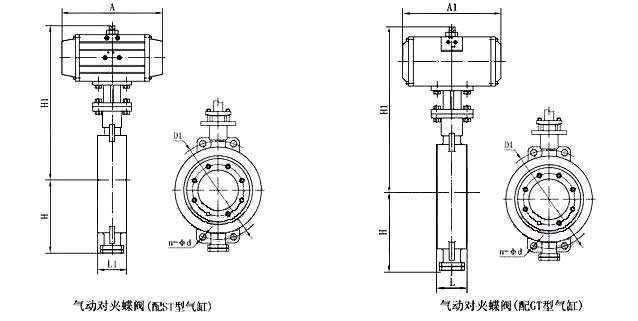 【D671X/F不銹鋼氣動蝶閥-主要外形尺寸】