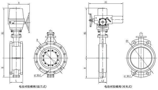 電動(dòng)對(duì)夾式蝶閥外形尺寸