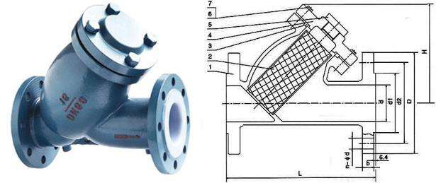GL41F46襯氟Y型過濾器是用來清除腐蝕性介質(zhì)中的雜質(zhì),保護泵、閥門及其它設備的正常使用。一般通水網(wǎng)為20-60目/cm2,通氣網(wǎng)為40-100目/cm2通油網(wǎng)為100-480目/cm2�?筛鶕�(jù)介質(zhì)相應配置。由于過濾器