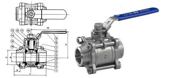 Q61F三片式對(duì)焊球閥主要零件材料