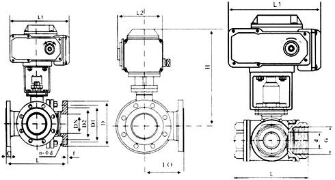 Q945F電動(dòng)三通球閥主要外形尺寸