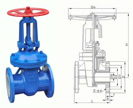 Z41F46 型 PN16、PN25 氟塑料襯里楔式閘閥:手動、法蘭連接、明桿楔式剛性單閘板,閥座密封面材料為聚四氟乙烯,公稱壓力 PN16~PN25,閥體材料為灰鑄鐵襯氟塑料的閘閥。